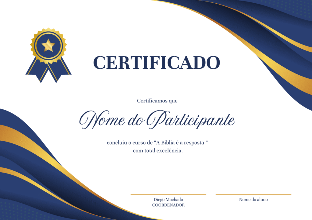 Ao concluir o conteúdo, você receberá um certificado digital exclusivo de participação na Comunidade “A Bíblia é a Resposta”.