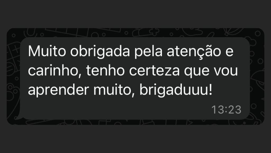 Se nesse período você entender que não é para você, por qualquer motivo, basta enviar uma mensagem e todo o seu investimento será devolvido, sem perguntas, sem burocracia.